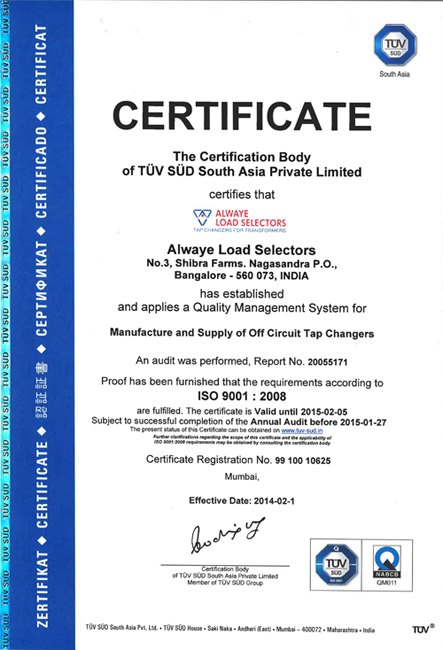 As an ISO 9001 : 2008 Certified Unit, Alwaye Load Selectors follows all Quality Management Principles in a stringent manner, and all systems and procedures are well documented. Quality Plans are available for all Components and Products, and Control Plans and Work Instructions are provided at the right locations to guide everyone within the system to follow the correct procedure.